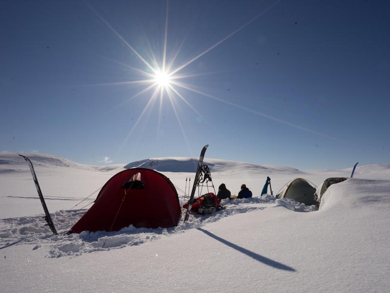 - Days 2-7: These tours have the same general arrangements as Standard tours but feature wild camping on all nights of the tour rather than staying in wilderness cabins. The tours will feature alternative routes compared to Standard tours and will be adapted depending on weather conditions. Camping tours will also have the intention to summit Halti during the week as for Standard tours.