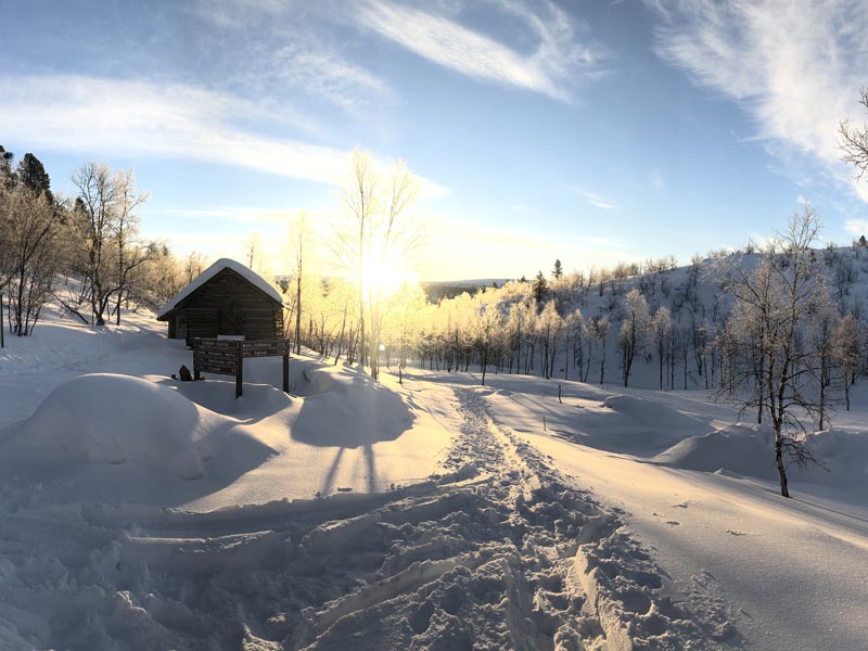 - Day 2: Skiiing to Saarijärvi wilderness hut (13km uphill): Leaving the tree-line behind you, cross frozen lakes and open fells with beautiful panoramic views encompassing Finland, Norway and Sweden.