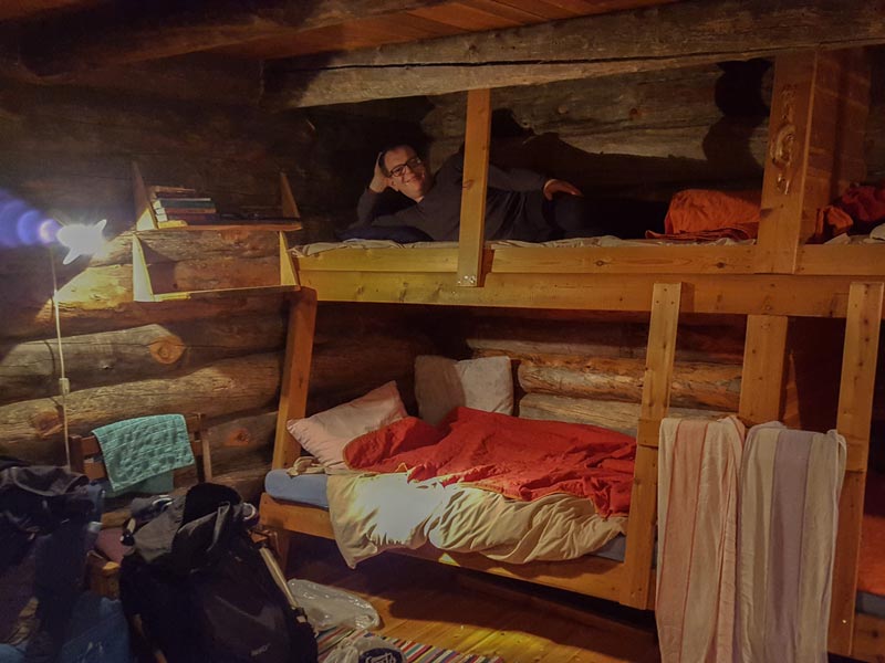 - Days 2-6 (standard tours): Wilderness huts along the route. No electricity/running water, wood-burning stove, gas cooker, dry outside toilet, bunk beds.