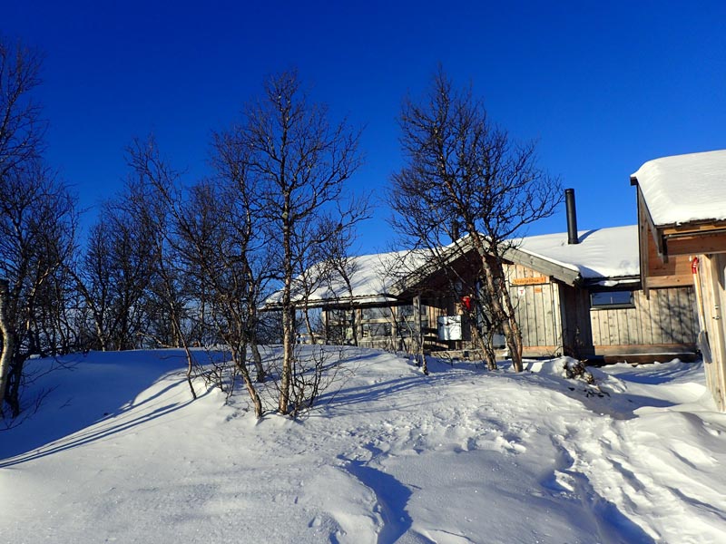 We stopped outside one of the Norwegian Trekking Association (DNT) cabins for our midday break. Similar cabins are used for the overnight expedition that is part of Learn to Backcountry Ski in Rondane – there is a choice of possible locations which may be used for the overnight tour depending on conditions and skiing distance.