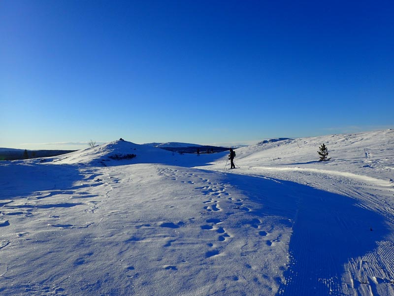 It was just wonderful to be out in the mountains. The wide horizons of Rondane are liberating and exhilarating. There was barely a breath of wind and, despite temperatures being quite low (it was January after all), in the sun it almost felt like spring.