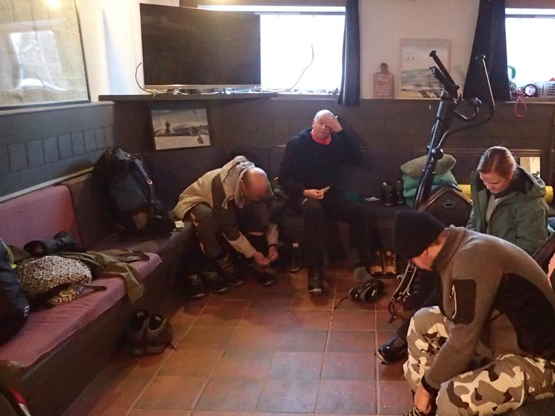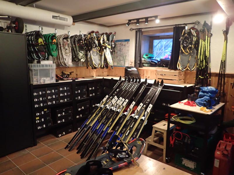 Suitably fortified with another wonderful breakfast, we headed down to the basement to collect our skis. It took me a couple of changes to find the right size of boots – I usually need to go up a size or two for winter boots – but soon we were ready for transfer the 20 minutes or so up onto the plateau where we would start our day’s tour.