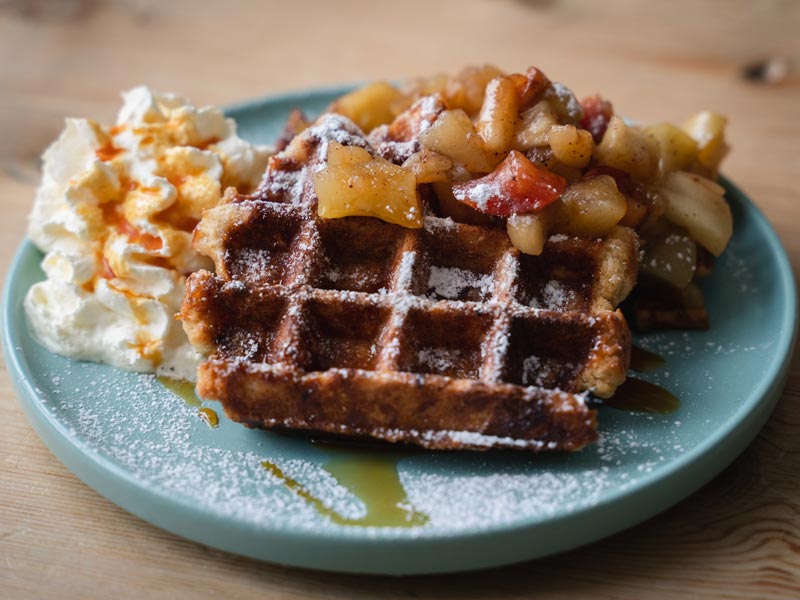 You can order as much as you think you’ll eat, but I recommend erring on the side of caution – the food is plentiful and filling! There’s lots to choose from, from home-made Belgian waffles to muesli, fresh-baked bread and delicious cheeses.