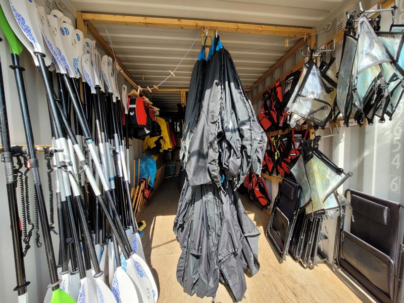 We would be using two single kayaks. There was so much lovely, high quality kit that we really wondered if we would fit it all in! But there’s a lot more storage space in a kayak than you think, and provided you pack in small, soft bags (you can borrow as many waterproof bags as you need) to make the most of all available room, it’s amazing how much you can squeeze in.