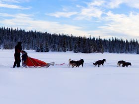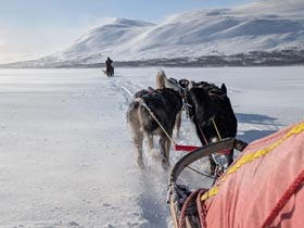 Choose to sled through beautiful lowland landscapes of frozen lakes and forest or in spectacular mountain scenery, staying overnight in wilderness cabins or even winter camping.