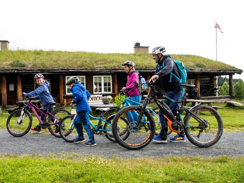 - Option 1: Milk Route South (6 days/5 nights, Easy): The South Route explores the highlands and summer farms with easy cycling on gravel roads. This is a circular route, starting from Kamben and cycling north to Syndinstøga, returning by a different route. Suitable for everyone, including families with children aged min. 5 years as well as adults, with bike carts available for children not cycling themselves.