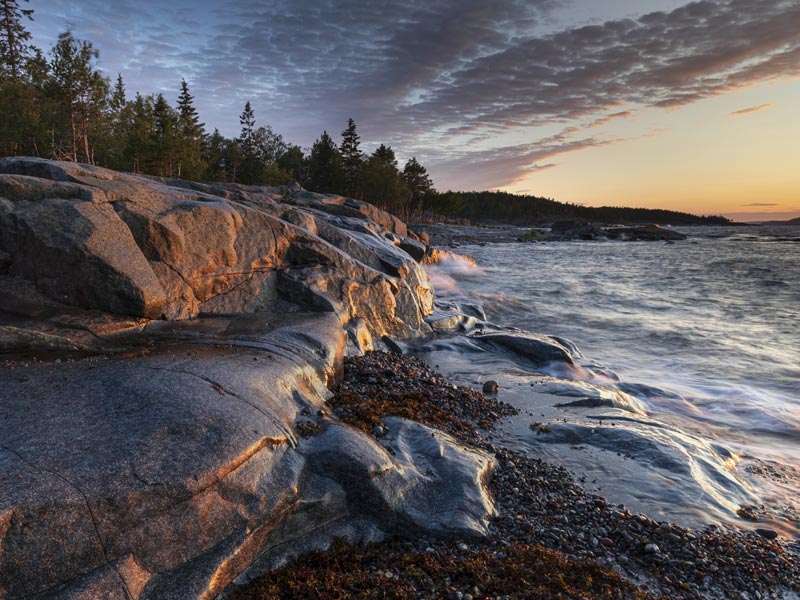 After breakfast, a vehicle transfer brings you to the coast to begin your hike on the World Heritage Trail through the "Rotsidan" nature reserve, with its landscape of beautiful, smooth cliffs dating from the Ice Age. Visit the 17th century chapel in the small fishing village of Barsta and take a coffee at the boathouse cafe in picturesque Bönhamn.
