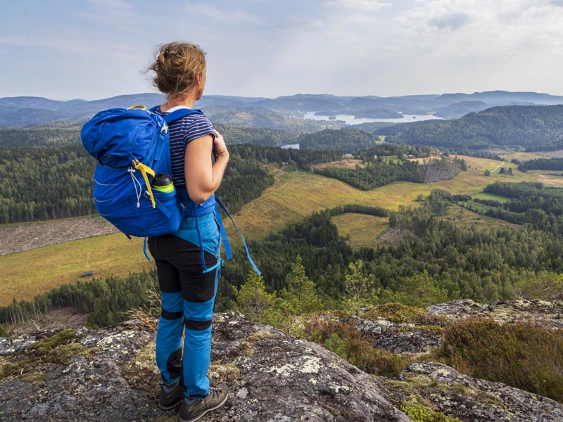 There are a number of wonderful viewpoints over the water. Those with extra energy can make a detour to the hill viewpoint at Rödklitten, with its Iron Age fort remains. Your hike ends back at the Hiking Centre.