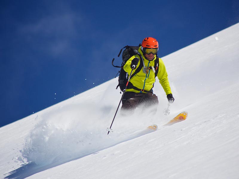 - Randonée ski package: Skis, bindings, boots, climbing skins, poles from Black Diamond. Please specify sizes in advance. NB: Guests must bring own helmet.